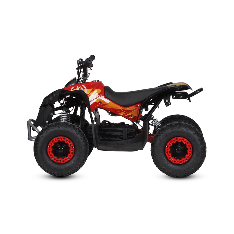 Quad wyposażony jest w silnik elektryczny o mocy 1060W zainstalowany na tylnej osi, co eliminuje potrzebę tradycyjnego napędu łańcuchowego. Bateria żelowa 48V 12AH zapewnia zasięg do 30 km na jednym ładowaniu (6-8 godzin). Pojazd osiąga maksymalną prędkość 25 km/h z możliwością regulacji przez 3 biegi: 8 km/h, 20 km/h i 30 km/h. Hamulce tarczowe z przodu i tyłu zapewniają bezpieczne zatrzymanie, a amortyzator tylny poprawia komfort jazdy.